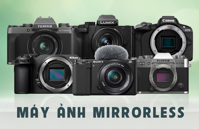 Mirrorless: Gọn nhẹ hơn DSLR, chất lượng cao, rất phù hợp cho người mới bắt đầu.