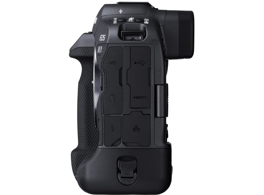Canon R3 đồng thời là máy ảnh đầu tiên trong dòng EOS R trang bị sẵn báng cầm dọc, biến chiếc máy này trở thành lựa chọn đầy công thái học cho nhu cầu chụp lâu dài và cần chuyển đổi chiều chụp dọc hoặc ngang liên tục. Thân máy cứng cáp gồm ống ngắm điện tử OLED 5.76 triệu điểm ảnh chất lượng cao và màn hình cảm ứng LCD 3.2" xoay lật đa hướng, 2 khay thẻ nhớ, kết nối cả không dây và có dây, thiết kế ngàm kết nối đa năng nâng cấp giúp tương thích nhiều phụ kiện hơn.